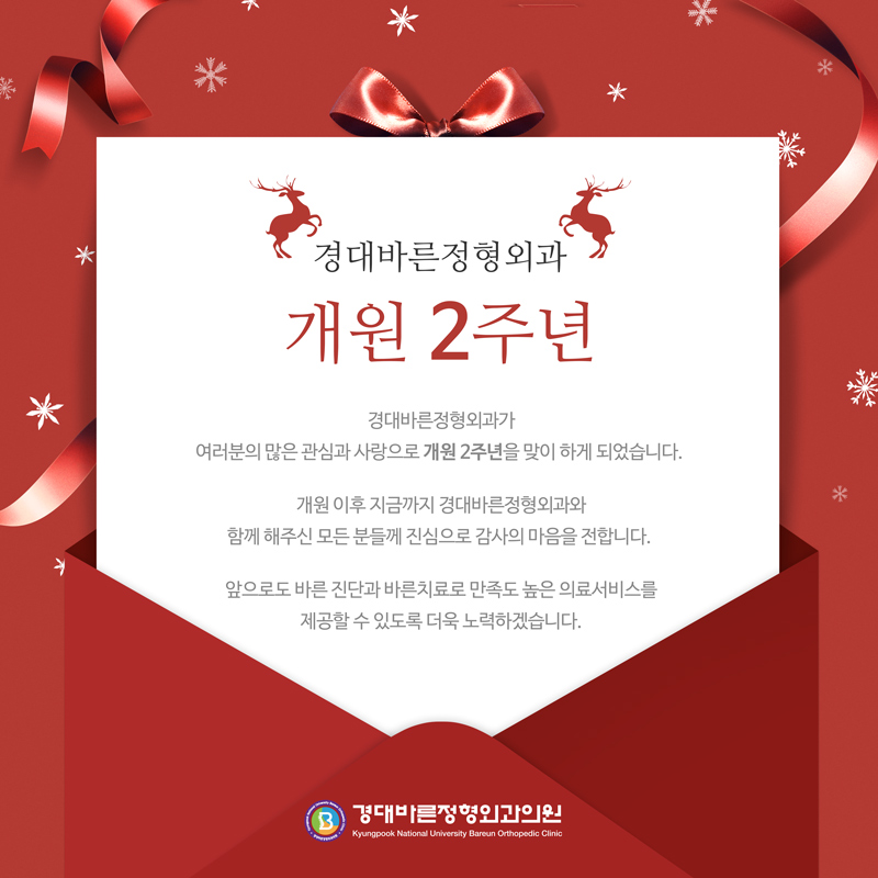 구미 봉곡동 경대바른정형외과, 2주년 기념 이벤트로 특별한 선물을 드립니다! 구미 지역에서 신뢰받고 있는 봉곡동 경대바른정형외과가 개원 2주년을 맞이하여 특별한 이벤트를